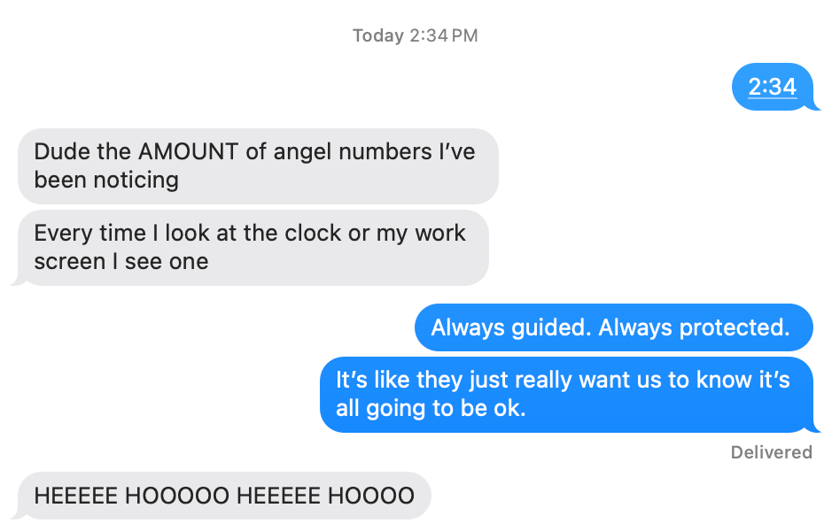 You don’t need to dig so deep and analyze. We do so much of that hunched over Excel during our drab 9-5s. Contact with angels doesn’t require STRAT plans, right-sizing, or meticulous assaying. Though I totally get the draw to investigate, which is partially why I am writing this post! It’s a beautiful part of the human experience —the need to meaning-make, but what’s more important is that you understand the foundational messages of angel numbers:
