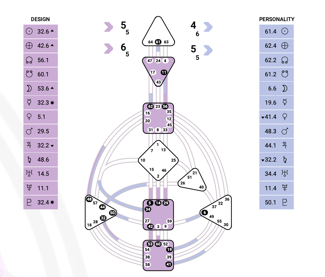 Planetary positions at the moment of your birth “activate” specific energy Gates in your BodyGraph, creating your personal blueprint.