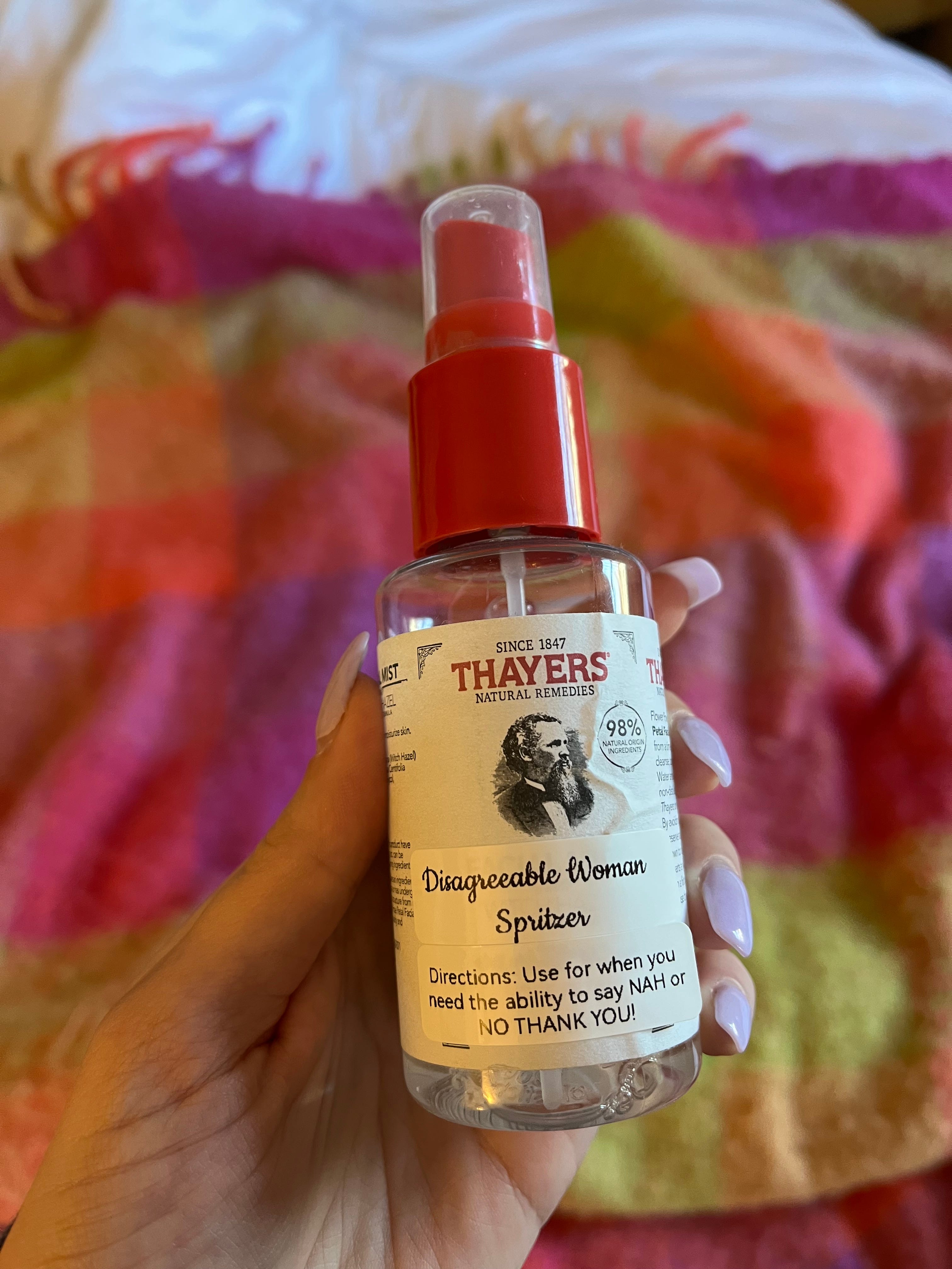 One of the first acts of “living authentically” and “by Design” I took was deciding to work on my people pleasing. So I relabeled my rosewater facial mist “Disagreeable Woman” spray. Whatever works, you know?!